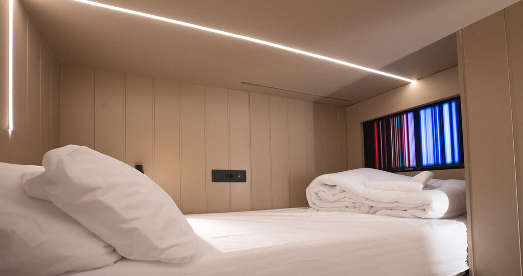 ¿Eres de los que siempre andan por las nubes? Entonces esta cápsula es para ti. Prepárate para el efecto flow: un espacio privado con estilo urbano y todo lo que necesitas para relajarte, estudiar, trabajar o maratonear tu serie favorita sin interrupciones. Gracias a su increíble aislamiento acústico, nadie te molesta y tú no molestas a nadie. Incluye una cama de 1,00 x 2,00 m, especialmente seleccionada para que descanses al máximo después de un día lleno de aventuras.